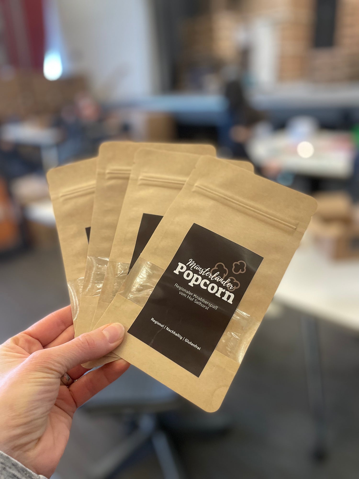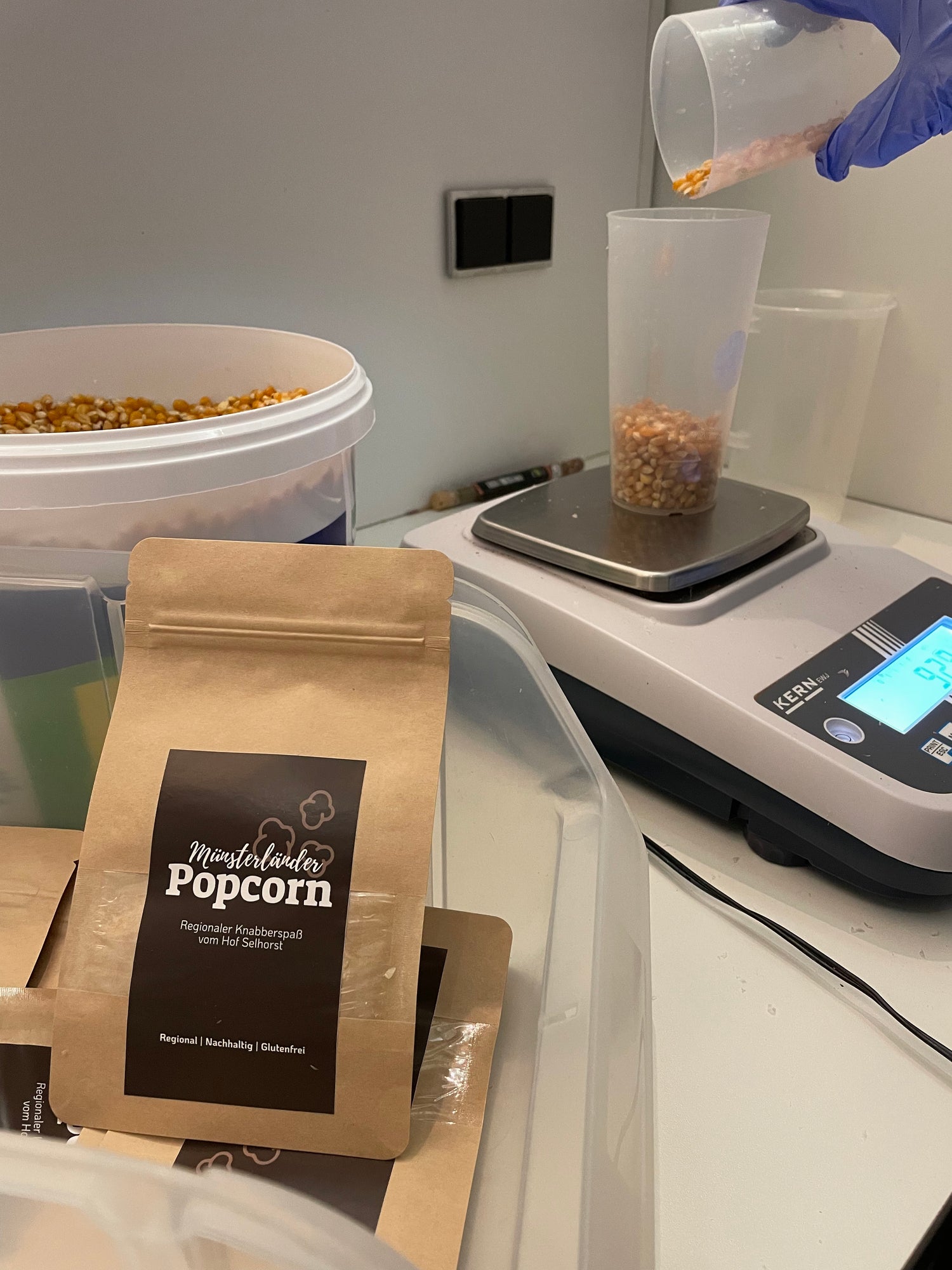 Der Popcornmais wird bei uns auf dem Hof in BigBags witterungsgeschützt und hygienisch gelagert. Die Befüllung und Verpackung haben wir früher selbst übernommen. Seit einiger Zeit haben wir diese Arbeitsschritte an die Alexianer Werkstätten in Münster abgegeben. Dort sind Menschen mit Beeinträchtigung eingestellt, welche auf ihrem Weg ins Berufsleben unterstützt und begleitet werden. Ihr wollt mehr über diese Einrichtung erfahren? Dann klickt hier!